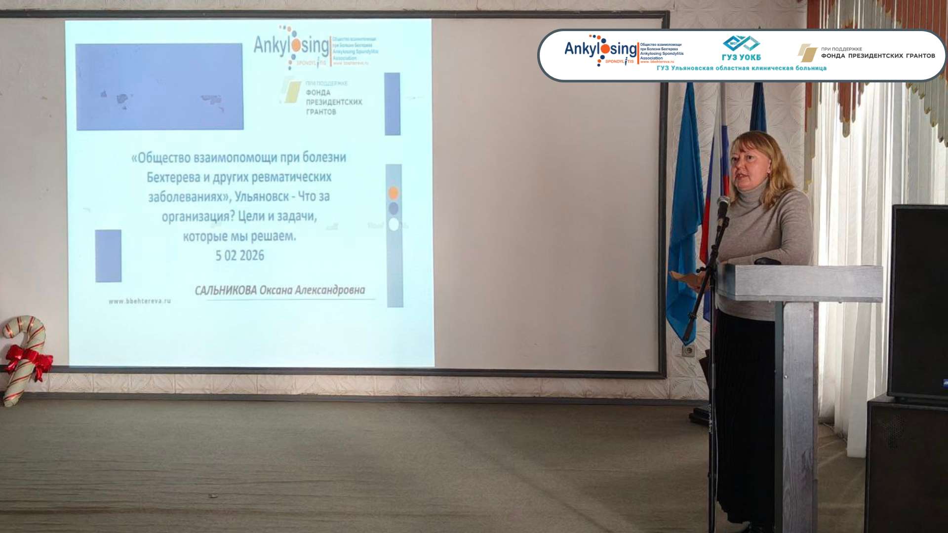 О деятельности пациентской организации, возможностях поддержки и сопровождения людей с ревматическими заболеваниями рассказала председатель Ульяновского отделения Общества взаимопомощи Сальникова Оксана Александровна.