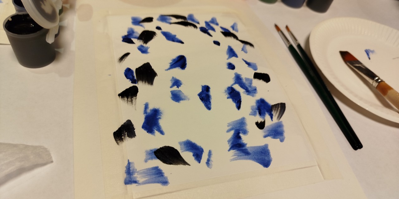 Занятия посетила, ознакомилась с новыми практиками, способами самовыражения красками на бумаге, рисовала кистью и губкой координатор проекта СОРС «Комплексная реабилитация людей с ОВЗ. Новые шаги!» Екатерина Клименко.