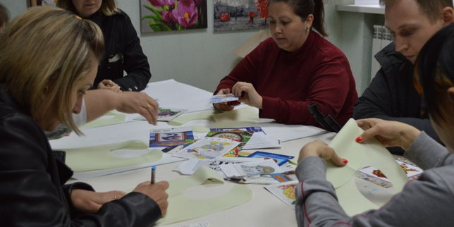 Продолжаются уроки живописи. Участники начали и продолжают рисовать новую картину.