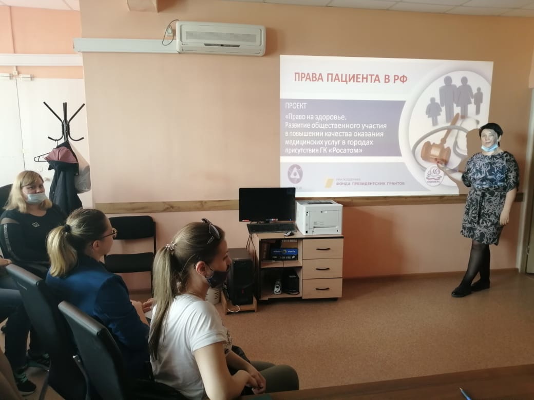 В целях правового просвещения граждан и представителей некоммерческих организаций в сфере охраны здоровья на территории ЗАТО г. Зеленогорска члены рабочей группы Общественного совета по здравоохранению Госкорпорации «Росатом» проводят серию занятий в рамках проекта «Право на здоровье. Развитие общественного участия в повышении качества оказания медицинских услуг в городах присутствия ГК «Росатом».