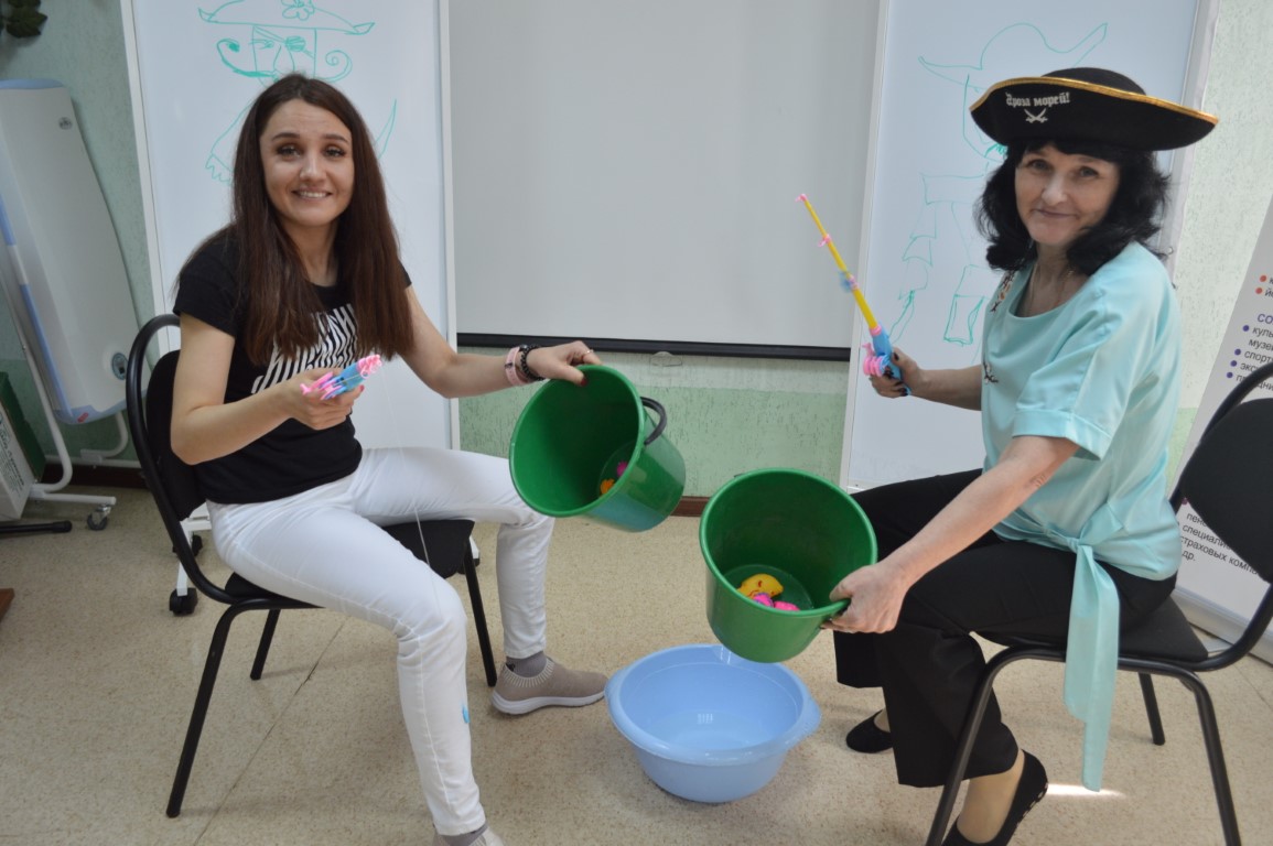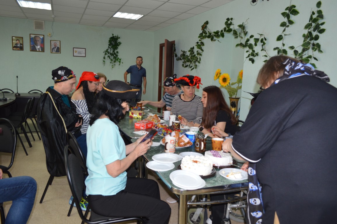Была подготовлена развлекательная программа - сегодня в Центре было нашествие пиратов с веселыми пиратскими песнями, морскими загадками, водными играми и переодеваниями!