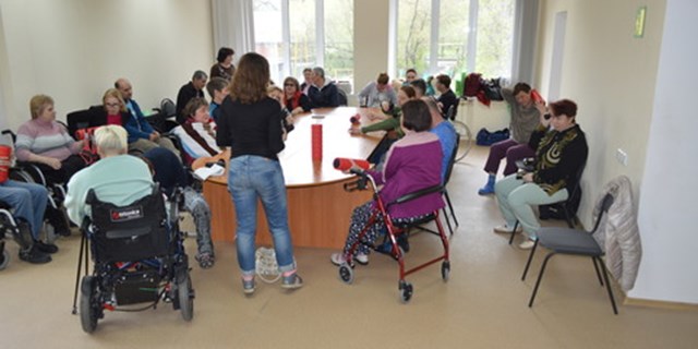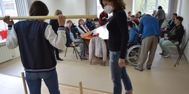 В рамках проекта «Твое здоровье - в твоих руках!», победившего в первом конкурсе президентских грантов 2022 г., регулярно проходит работа с группами выездных занятий для пациентов с рассеянным склерозом, на базе СО РЦ Самарский (п. Береза, квартал 2, д. 12).
