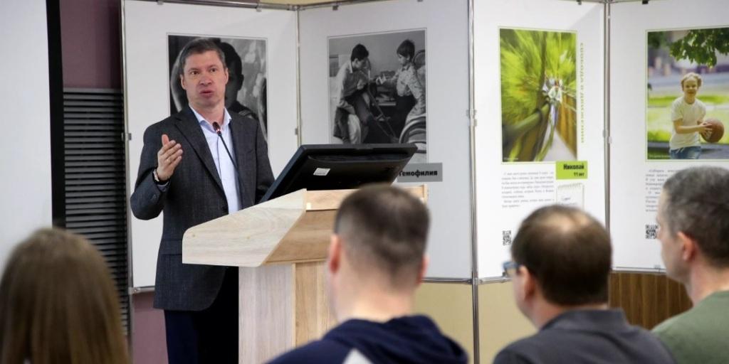 Президент Всероссийского общества гемофилии Юрий Жулев познакомил участников с опытом эффективного взаимодействия врачей и пациентов в лечении гемофилии