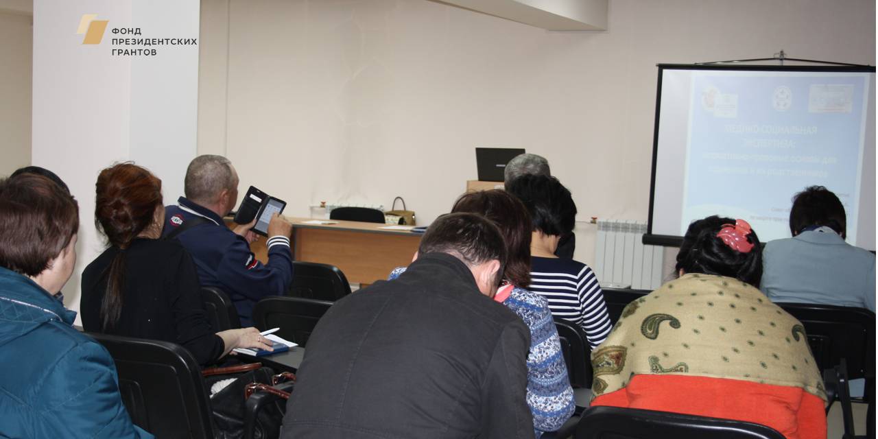 Всероссийским союзом пациентов, в рамках президентского гранта по проекту «Бюро медико-социальной экспертизы и пациентское сообщество - развиваем взаимодействие» и при организационной поддержке Совета общественных организаций по защите прав пациентов при Территориальном органе Росздравнадзора по Республике Бурятия, 26 апреля 2019 года, был проведен первый информационный семинар на тему: «Медико-социальная экспертиза: нормативно-правовые основы для пациентов и их родственников»