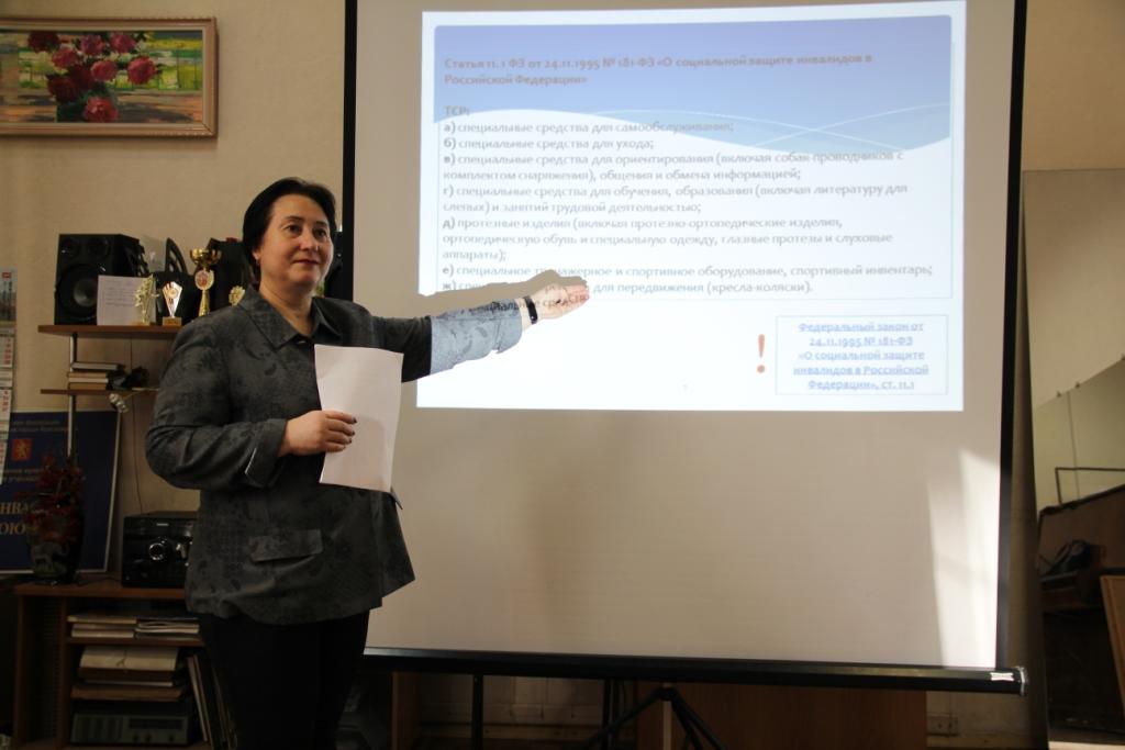 9 октября 2019 года Ведущая семинара Власова Л.В. – руководитель Красноярского краевого регионального отделения Общероссийской Общественной организации инвалидов больных рассеянным склерозом в доступной форме довела до сведения граждан с инвалидностью о их правах, возможностях получения технических средств реабилитации, а так же услуг в соответствии ИПРА.
