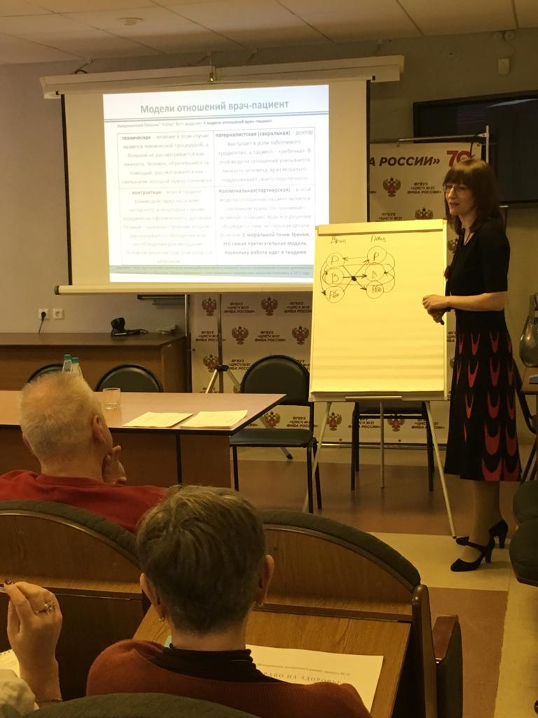 В ходе изучения модели пациент-ориентированной модели медицинской консультации и интерактивного изучения навыков эффективного взаимодействия врача и пациента ведущей Песневой О.В. отмечено, что 90% конфликтов возникает из-за неумения или нежелания врача объяснить пациенту или его близким информацию о состоянии здоровья, его права и обязанности.