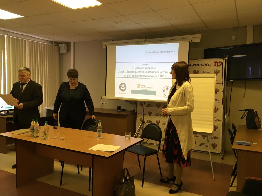 14 ноября 2019 года в конференц-зале ФГБУЗ МСЧ №32 состоялся тренинг для медицинских работников г.Новоуральск Свердловской области, в рамках проекта «Право на здоровье. Основы бесконфликтного взаимодействия для пациентов и врачей городов ЗАТО» Всероссийского союза пациентов, поддержанного Фондом президентских грантов.