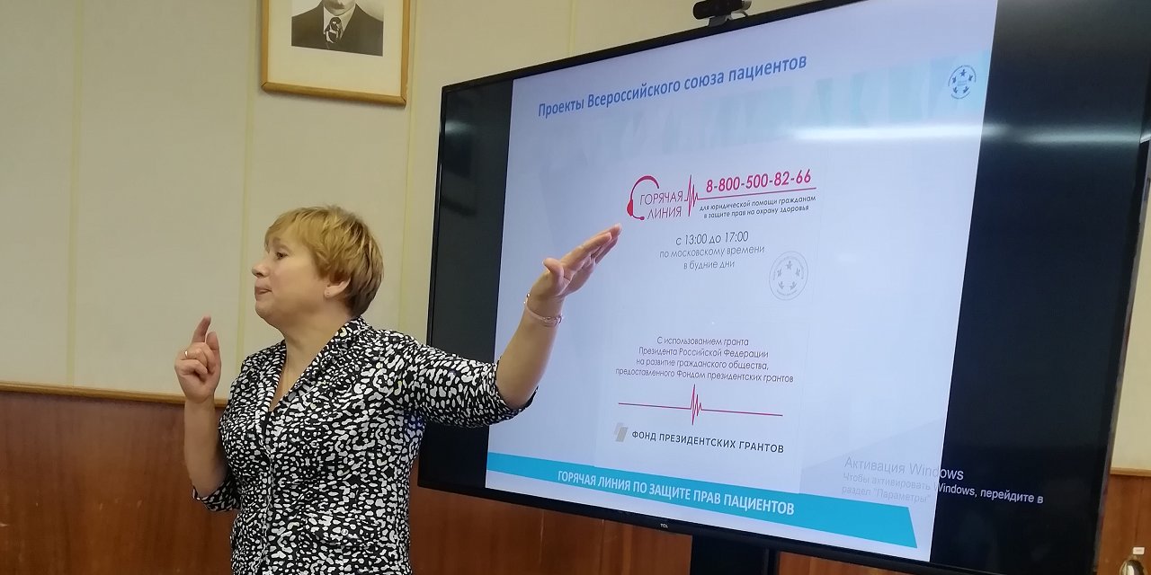 Ведущая семинара Сазонова И.Г. рассказала о Всероссийском союзе пациентов, его цели и задачи, о системе организации медицинской помощи в РФ, программе государственных гарантий для пациентов, лекарственном обеспечении.