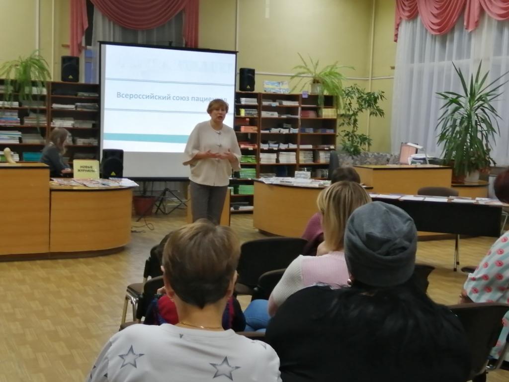 В рамках проекта Всероссийского союза пациентов «Право на здоровье. Основы бесконфликтного взаимодействия для пациентов и врачей городов ЗАТО», поддержанного Фондом президентских грантов, 03 декабря 2019 года в читальном зале ЦГБ (центральной городской библиотеки) состоялась Школа правовой грамотности для сотрудников «Комплексного центра социальной поддержки населения», «Центра помощи детям, оставшимся без попечения родителей», для людей с инвалидностью и родителей детей с ОВЗ.