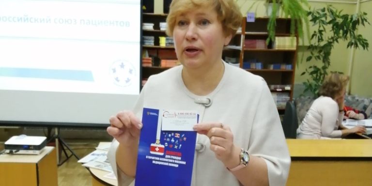 Ведущая семинара Сазонова И.Г. рассказала присутствующим о Всероссийском союзе пациентов, системе организации бесплатной медицинской помощи в РФ, программе государственных гарантий для пациентов, ФЗ № 323, лекарственном обеспечении.
