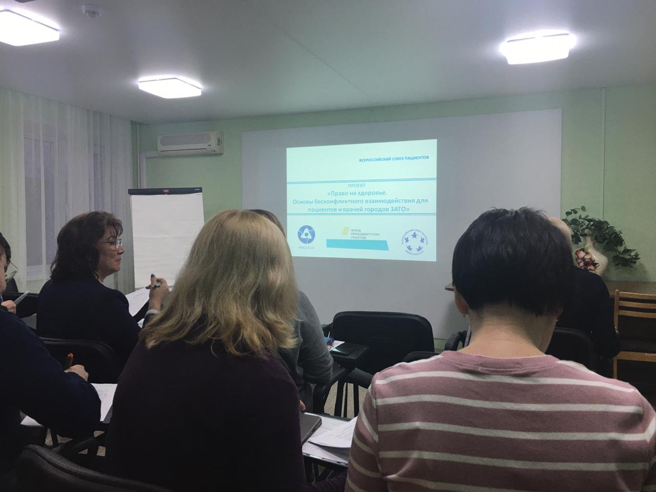 29-31 января 2020 года в конференц-зале отеля «Новоуральск» в г. Новоуральске, Свердловской области, в рамках проекта «Право на здоровье. Основы бесконфликтного взаимодействия для пациентов и врачей городов ЗАТО» Всероссийского союза пациентов, поддержанного Фондом президентских грантов, прошел тренинг для врачей, будущих экспертов в сфере бесконфликтного взаимодействия с пациентом.